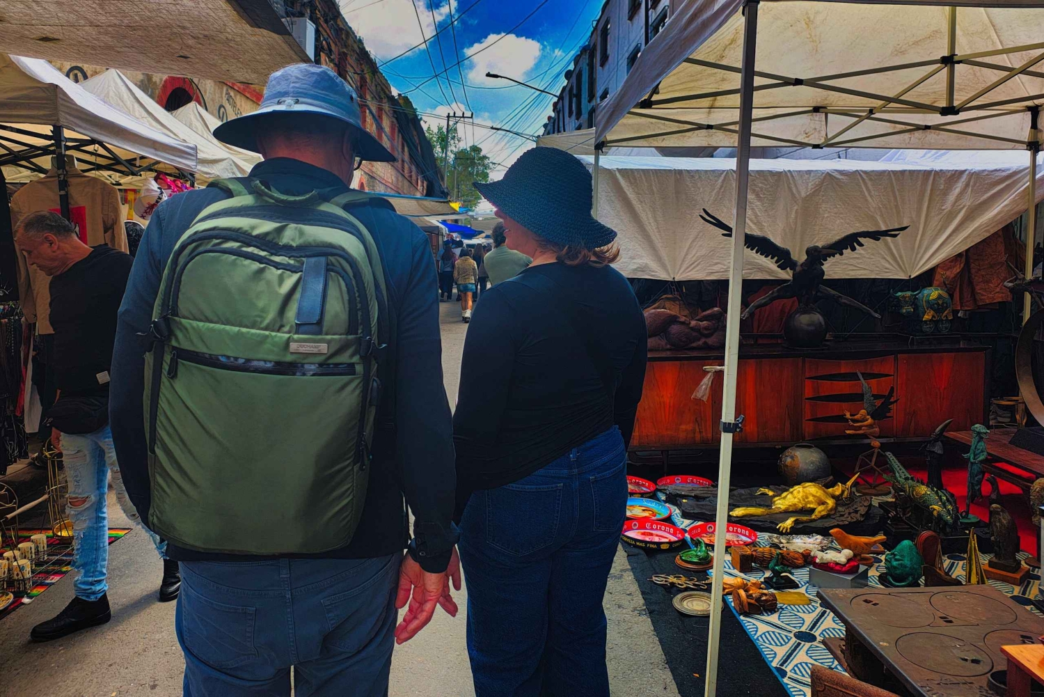 Nuestro recorrido comienza entre laberintos de puestos rebosantes de antigüedades. Cada objeto tiene una historia que contar, desde muebles antiguos hasta reliquias artísticas y curiosidades que han viajado a través del tiempo. Te guiaré en la búsqueda del tesoro, ofreciéndote consejos para negociar como un lugareño, asegurándome de que encuentres esa pieza especial que resuena contigo.