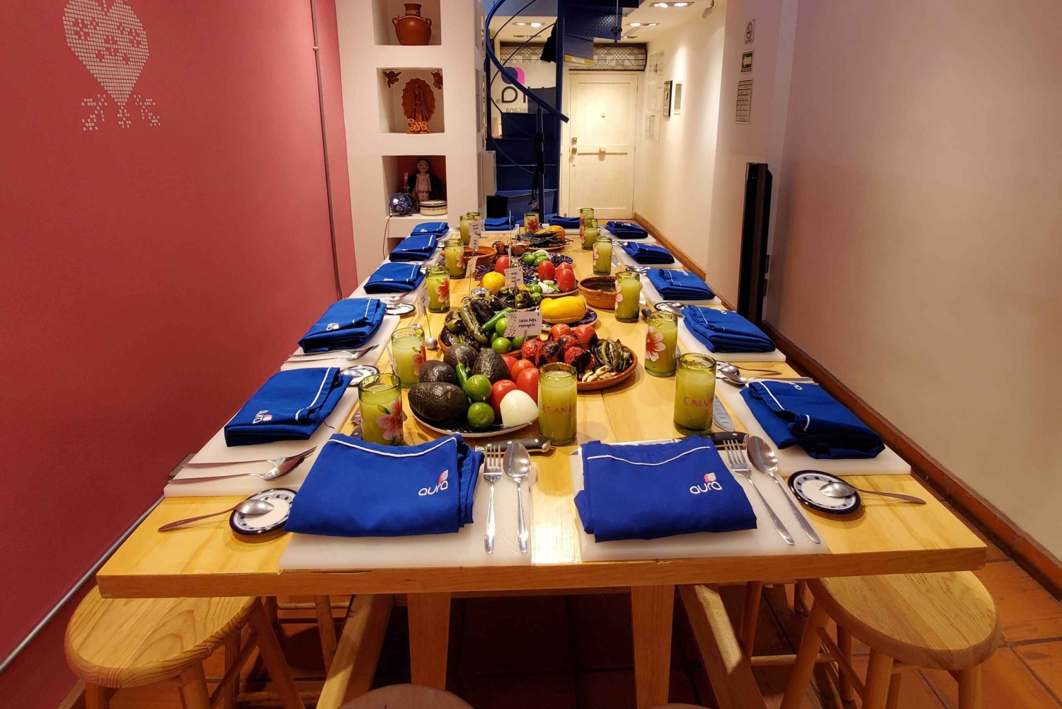 Comienza tu experiencia en un estudio de cocina contemporánea en la ecléctica colonia Roma Norte. Conoce a tu chef instructor con una refrescante bebida de bienvenida de agua fresca (bebida afrutada sin alcohol). Disfruta de un café de granos mexicanos seleccionados o de una infusión especial mientras te preparas para la experiencia y aprendes sobre la historia de la cocina mexicana.