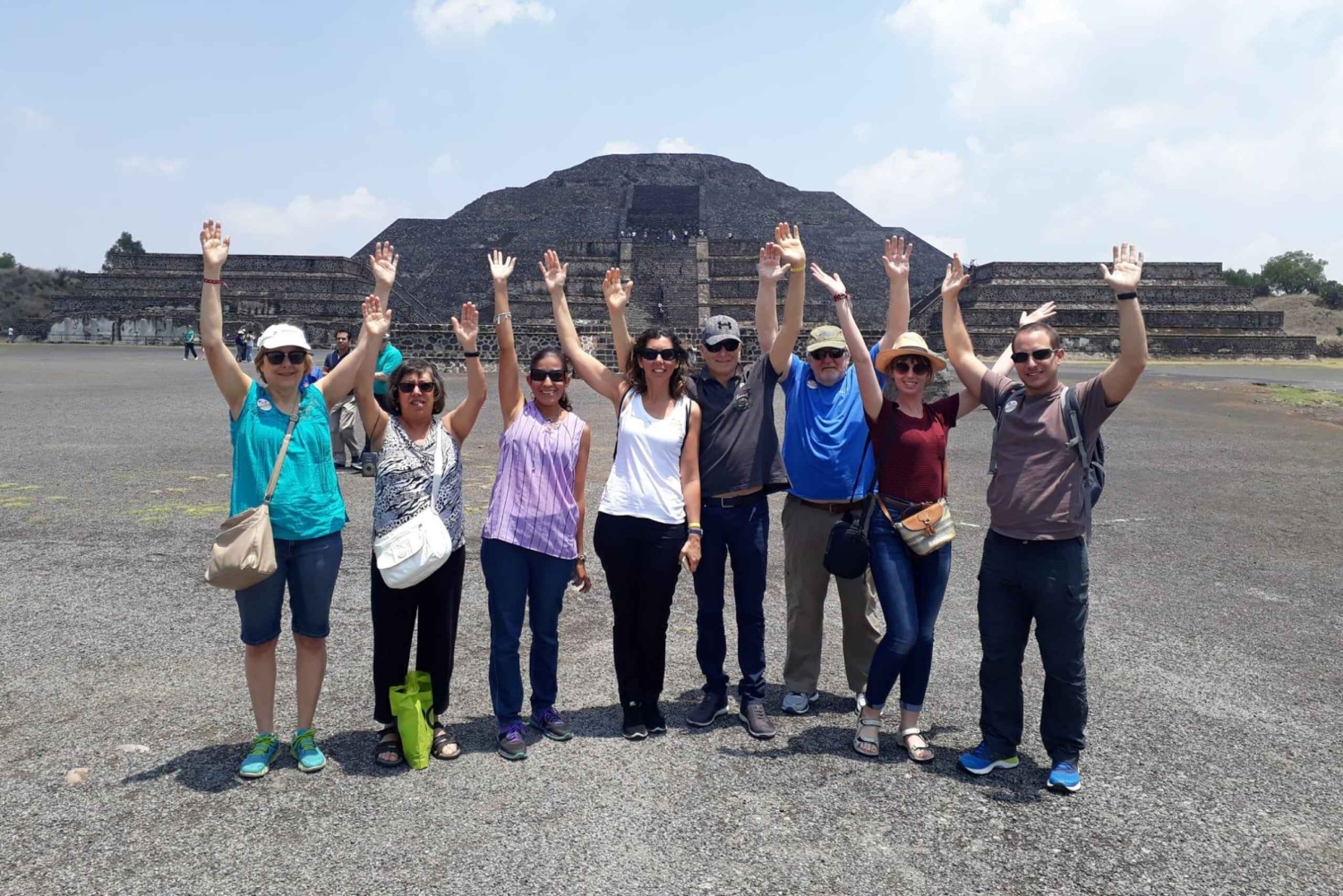 Visita a la zona arqueologica de Teotihuacan visitando Piramide de la Luna, Palacios, Piramide del Sol, calzada de los muertos, Ciudadela, Piramide de Quetzalcoatl.