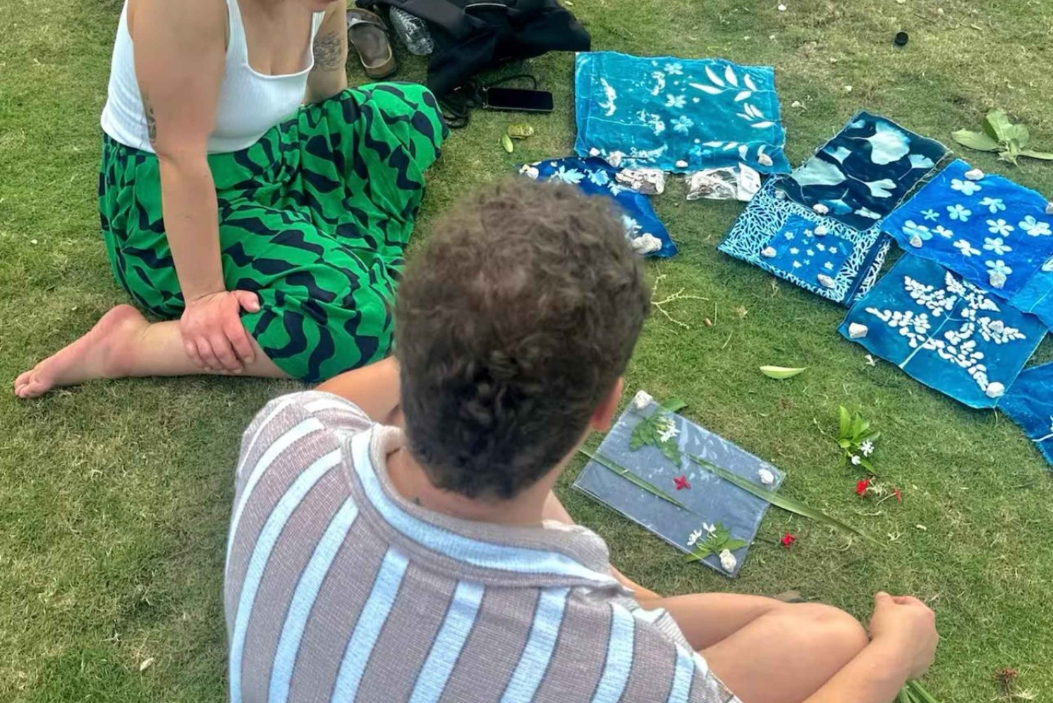 - Create unique artworks using botanical cyanotype and water marbling
