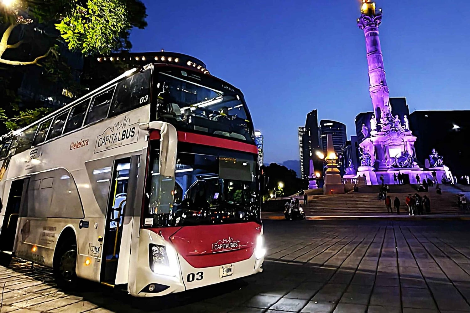 Embark on a unique night tour on a double-decker bus, ideal for exploring Mexico City as night falls. This experience is perfect if you only have a few days to get to know the city, as it lets you admire its most iconic monuments without the crowds or the heat of the day. The tour starts at the Zócalo, the historic heart of the city, and from there, the enclosed bus will take you along the main streets and avenues, giving you panoramic views of places like the Palacio de Bellas Artes and the Paseo de la Reforma, all lit up in a special way that gives them a unique and fascinating vibe. You can also learn about the history of these monuments through an audio guide available in several languages. Along the way, you'll enjoy the tranquility of the city at night, without the usual crowds of tourists. You'll visit the Angel of Independence, the Latin American Tower, and other highlights, which, under the night lights, take on a special beauty. You'll have time to take amazing photos and soak up the city's unique atmosphere at dusk. This tour is designed for those who want to see the best of Mexico City on a comfortable and fast tour, without distractions or commercial stops. The experience is ideal if you're looking for an authentic tour that lets you enjoy the capital at its most charming, without the crowds that are usually common during the day. Mexico City, known as the city that never sleeps, invites you to discover its most magical side with this tour of its vibrant nightlife. Take this opportunity to see its most important monuments under the lights of the night, while you learn about its history and architecture. It's sure to be an experience that will leave an indelible mark on your memory. With the Hop-On Hop-Off option, discover Mexico City at your own pace. Start your tour at the iconic Angel of Independence and enjoy the views of the elegant Paseo de la Reforma from the comfort of a panoramic bus. Hop off at the Chapultepec Museums to learn about their history and art, or continue to the modern Plaza Carso and the impressive Soumaya Museum. Explore the charming Polanco neighborhood, with its beautiful Lincoln Park, exclusive boutiques, and cozy cafes. Check out the famous Diana the Huntress Fountain and don't miss the National Auditorium, home to great concerts and shows. This is just one of the routes you can enjoy; with the Capital Bus hop-on hop-off wristband, you can also access other routes to explore the city at your own pace With daily departures and a frequency of 40 to 45 minutes, you can hop on and off as many times as you like during the day. Travel in comfort on air-conditioned buses with panoramic views and enjoy a unique experience to discover the best of Mexico City your way.Includes